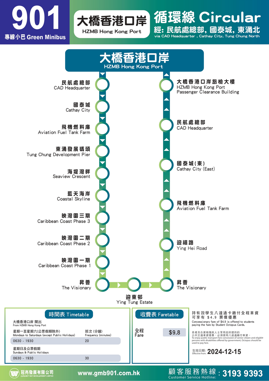 901 港珠澳大橋香港口岸 > 迎東邨 (循環線)